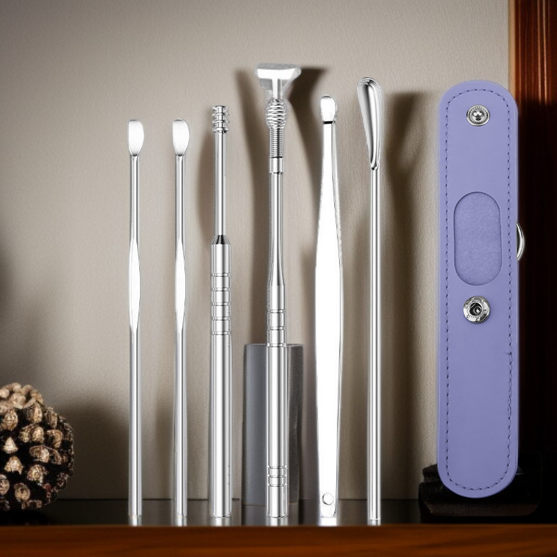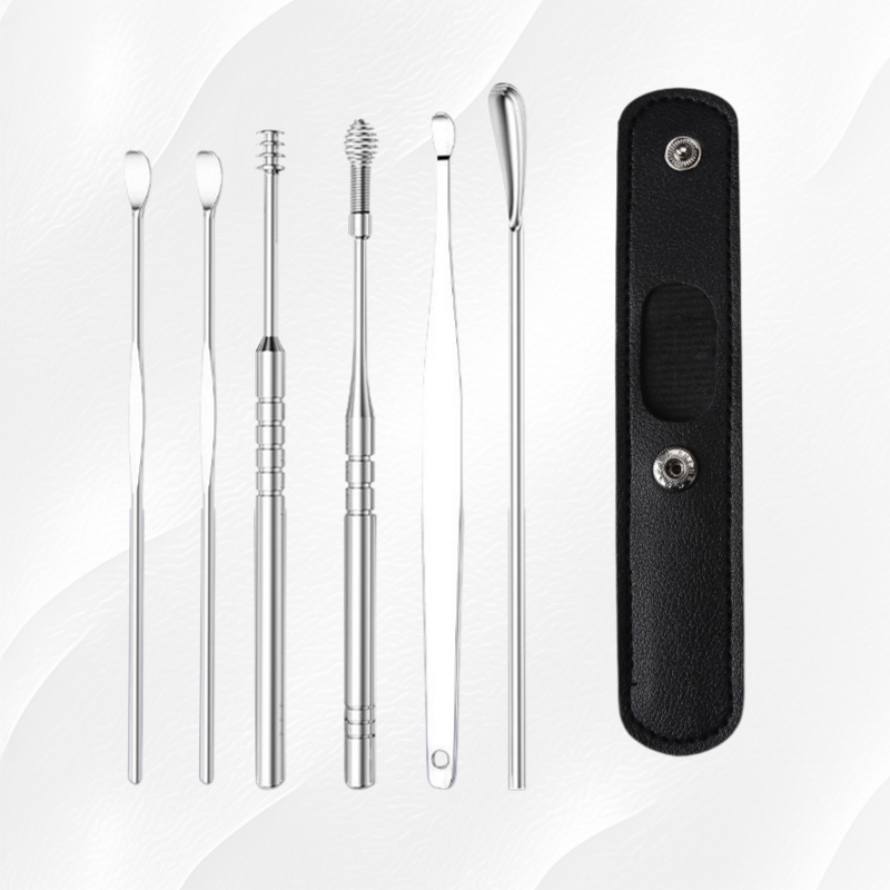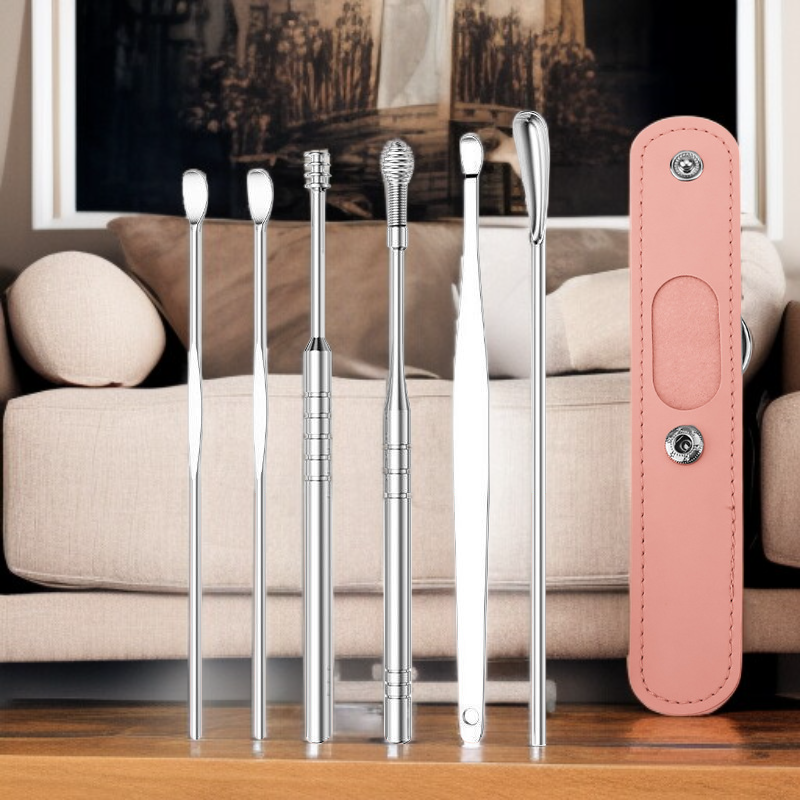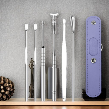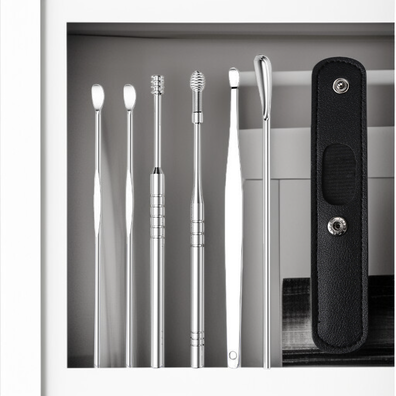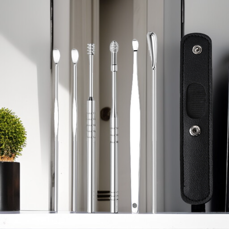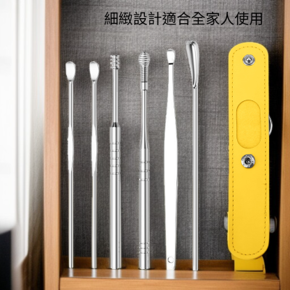 ● 高級挖耳勺套裝採用醫療級不鏽鋼材質,堅固耐用且易於清潔,讓您安心呵護耳道健康。